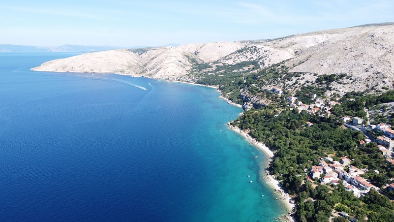 is located in the southern part of the island Krk, 8km away from Punat, 16km from Krk. The entire length of the place, about two kilometers, stretches beautiful sandy and pebble isolated beaches splashed by the blue waves of the famous clean Adriatic sea. Because of its unique natural beauty, the main economic branch today is tourism. Gourmets can savor home-grown lamb, sheep cheese or freshly caught and prepared fish and round them all off with a few drops of homemade wine.